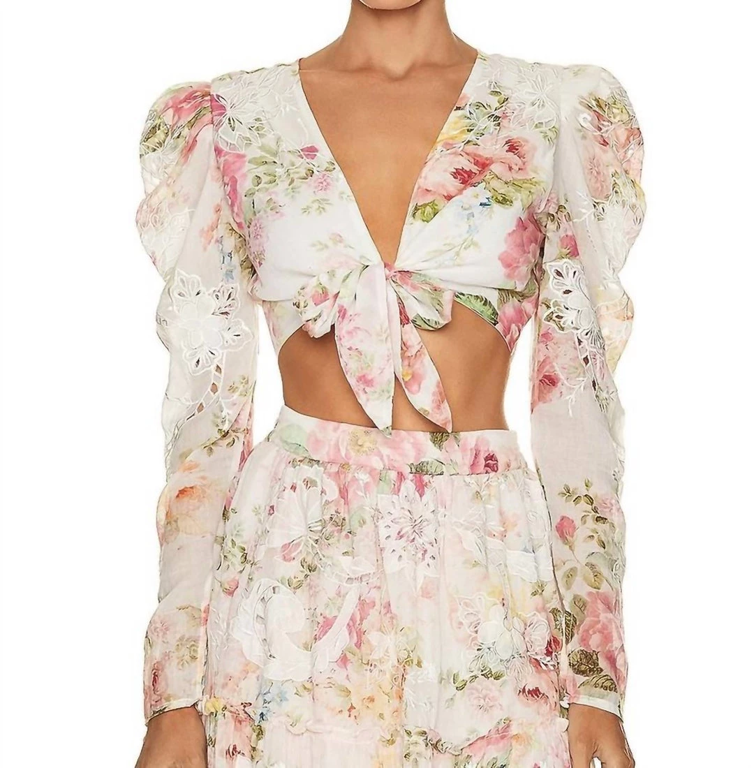 Hemant And Nandita’S Crop Top Captures Rustic Romance With Its Delicate Print And Puffed Sleeves. Cut From Lightweight Cotton, The Top Is Lined For Opacity, Has A Plunging Neckline That Leaves Space For A Dainty Chain And Finishes With A Knotted Waistline.