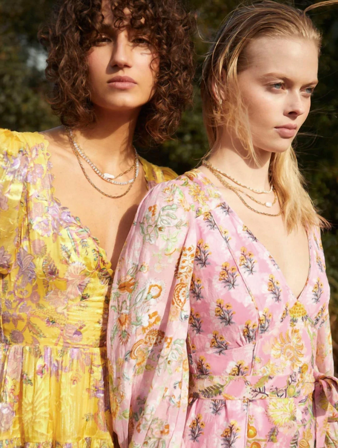 The Dhea Short Dress is a feminine addition to your closet.�� It features a plunging neckline, layered skirt, billowy sleeves, and tie belt.�� The perfect date night or wedding guest dress.��