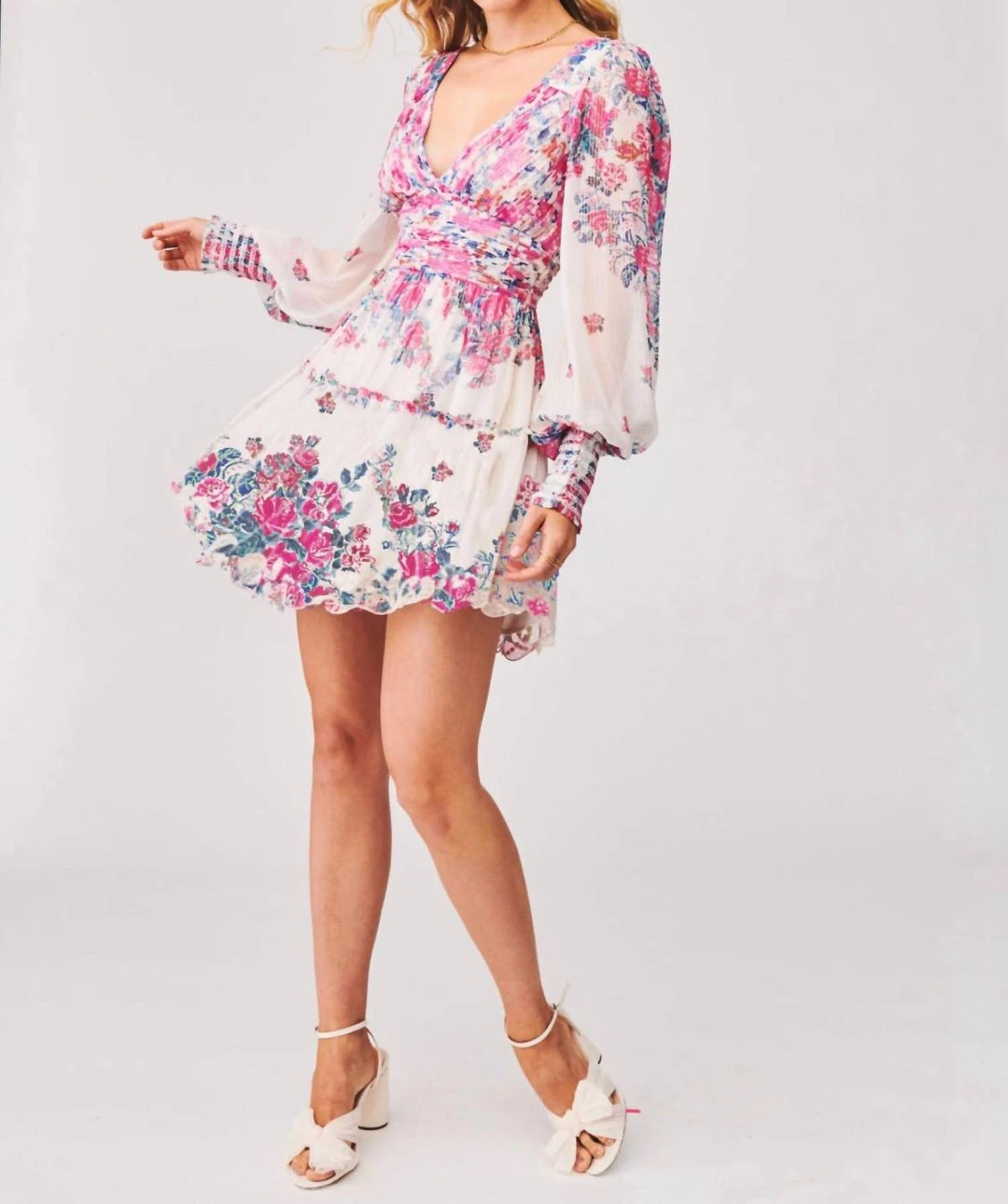 The Mila dress feature a deep v-neckline. An amalgam of prints with elegance.Style this short dress with a pair of white heels, gold earrings and necklace for an elevated day spring look.TricolorFits True to sizeLace detailing at the bottom