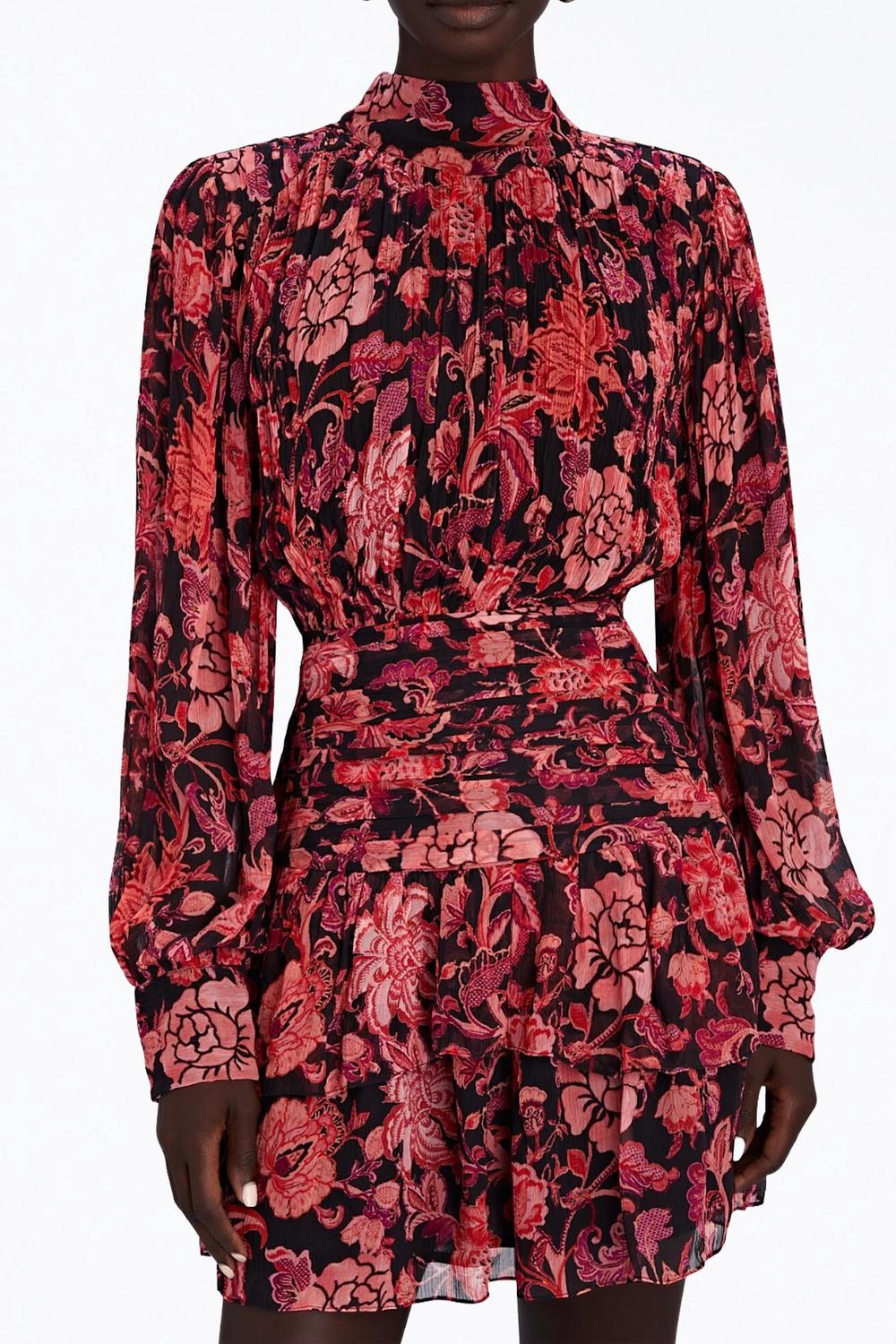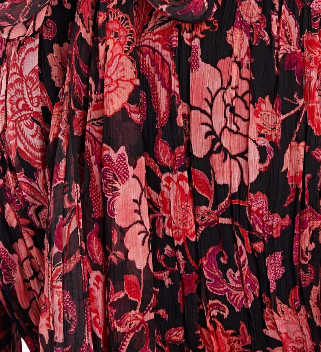 Cut from weightless georgette and patterned with pretty florals, Hemant and Nandita’s mini dress hasοΏ½οΏ½sheer billowyοΏ½οΏ½sleeves and is flatteringly ruched throughout the bodice and waist. It has a tiered, ruffled skirt and back ties which you can fasten into a pretty bow. Wear yours with sandals or knee-high boots as temperatures drop.Fabrication – 100% ViscoseCare – Dry cleanStandard Clothing Sizing