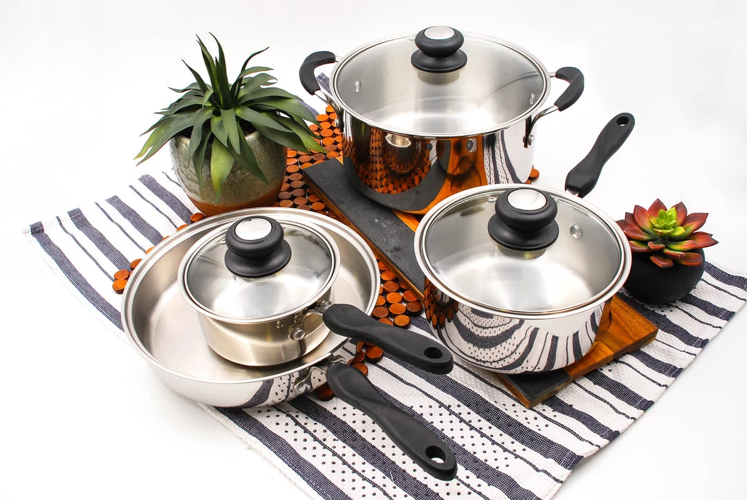 1qt Covered Saucepan with Glass Lid, 2qt Covered Saucepan with Glass Lid, 5.5qt Dutch Oven with Glass Lid, 10″ Frypan.