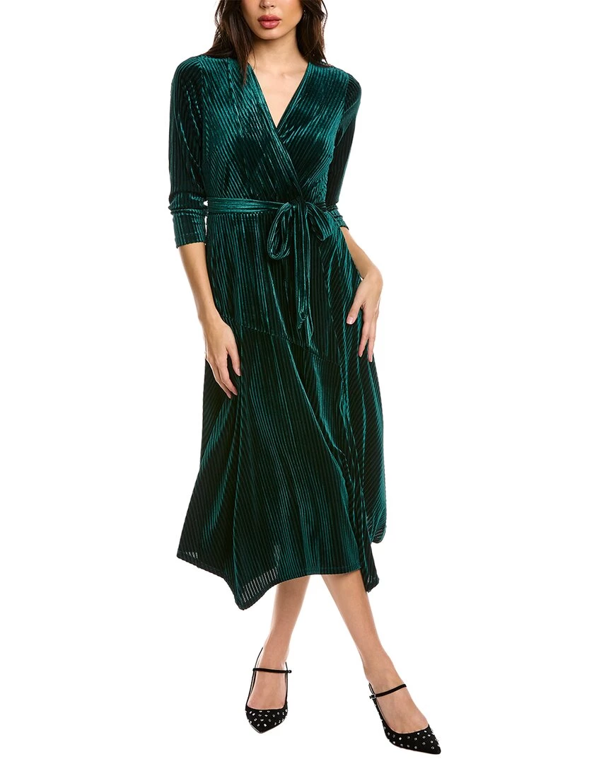 - Design Details – Velvet Design, Surplice Neck, 3/4-Length Sleeves, And Self-Tie Sash At Waist