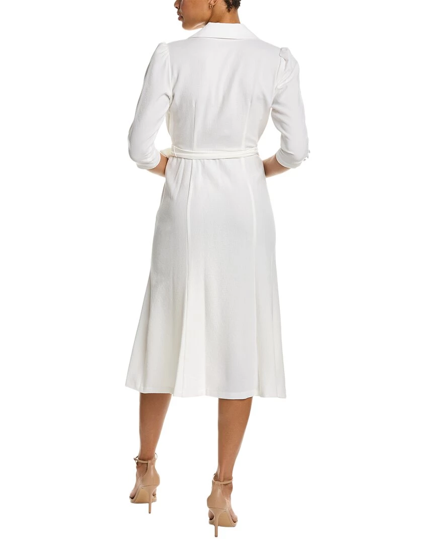 - Design Details – Spread Collar, Surplice Neckline, 3/4-Length Sleeves With Button Cuffs, Self-Tie Belt At Waist And Split Front Hem