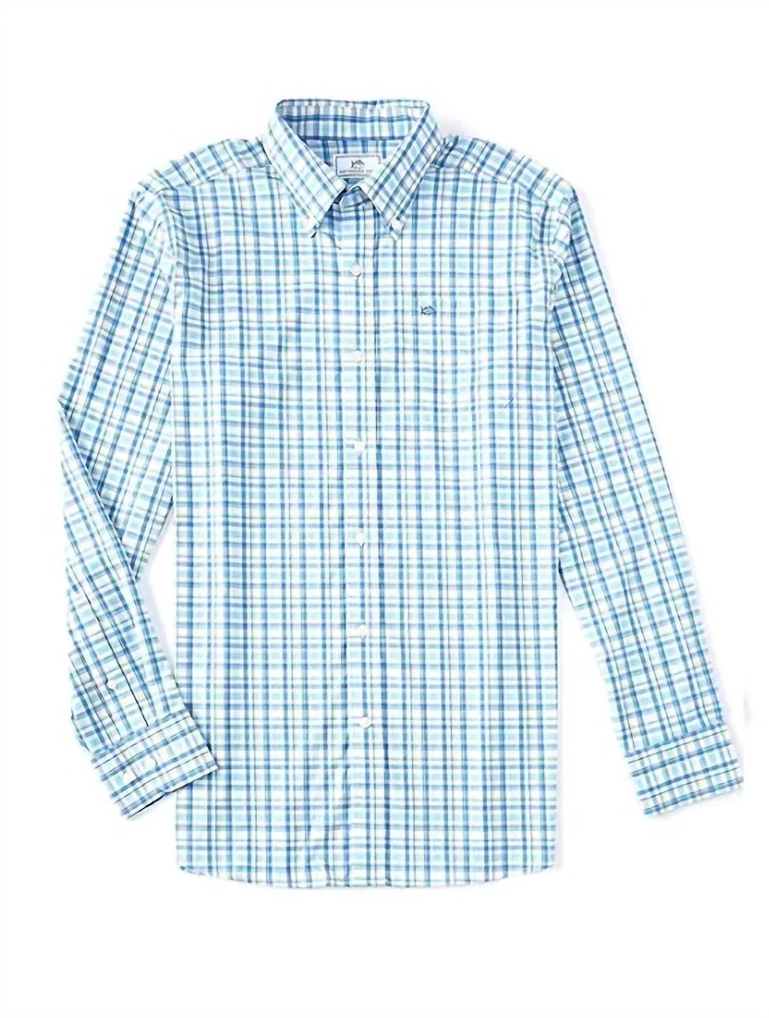 Button-down collar . Long sleeves with 2-button adjustable cuffs. Left chest pocket with Skipjack embroidery. Full button front. Eyelets under arm. UV Protection. Moisture-wicking. Stretch fabric